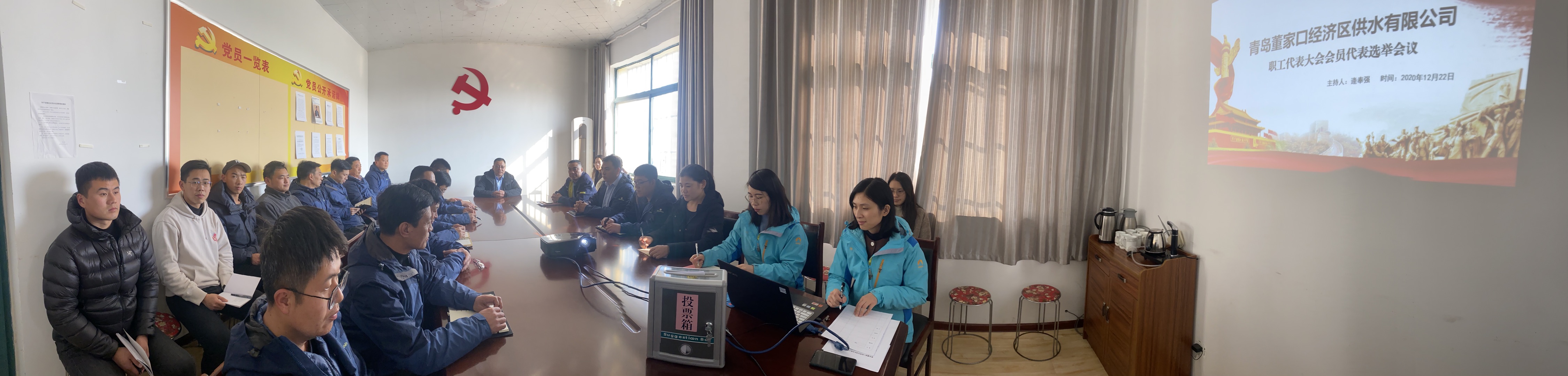 2020年12月22日下午,董家口供水公司召開青島源水投資發(fā)展集團有限公司供水公司代表組工會代表大會、職工代表大會。大會應到人數(shù)29人,實到24人,符合規(guī)定人數(shù),會議真實有效。本次會議由逄奉強同志主持。會上采取無記名投票形式,逄奉強、姜軒、宋如軒、宗瑞4人全票成功當選為供水公司代表組第一屆工代會代表、職代會代表。同時,推選宋如軒同志為供水公司代表組小組長。