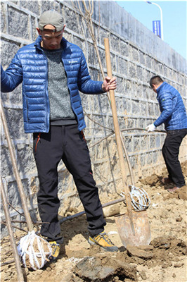 為保證活動的順利進行,全體人員共分為九組,并設置了專門的樹苗工具保管人和監(jiān)理人員。經(jīng)過三個多小時的勞動,植下單櫻、雙櫻和染井吉野櫻三個各類的苗木共計1200余棵。